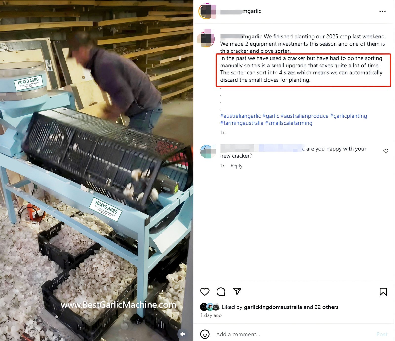 Our Garlic Machines have enjoyed so much real and good feedback from Garlic farmers over 30 countries. We are so much inspired by helping them save labour, do easy job, grow amzing garlics !